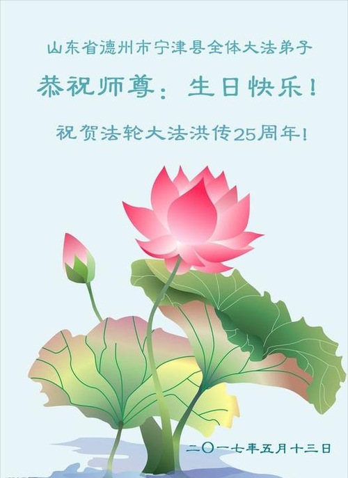 Falun Dafa Practitioners from Dezhou City Celebrate World Falun Dafa Day and Respectfully Wish Master Li Hongzhi a Happy Birthday (27 Greetings)