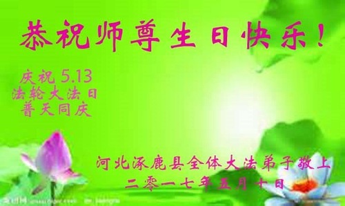 Falun Dafa Practitioners from Zhangjiakou City Celebrate World Falun Dafa Day and Respectfully Wish Master Li Hongzhi a Happy Birthday (22 Greetings)