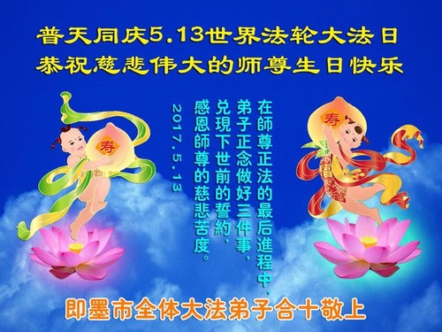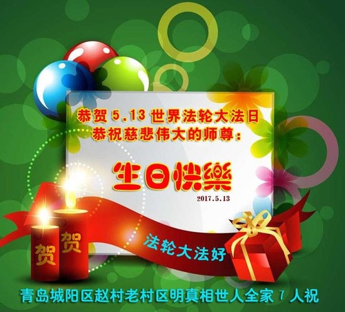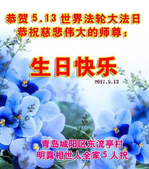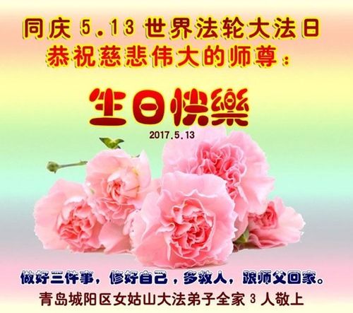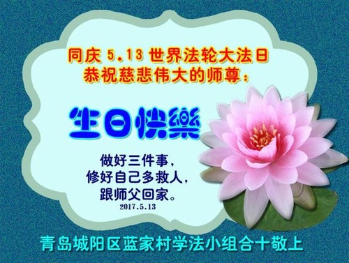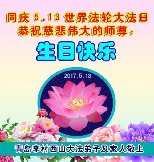 Falun Dafa Practitioners from Qingdao City Celebrate World Falun Dafa Day and Respectfully Wish Master Li Hongzhi a Happy Birthday (18 Greetings)