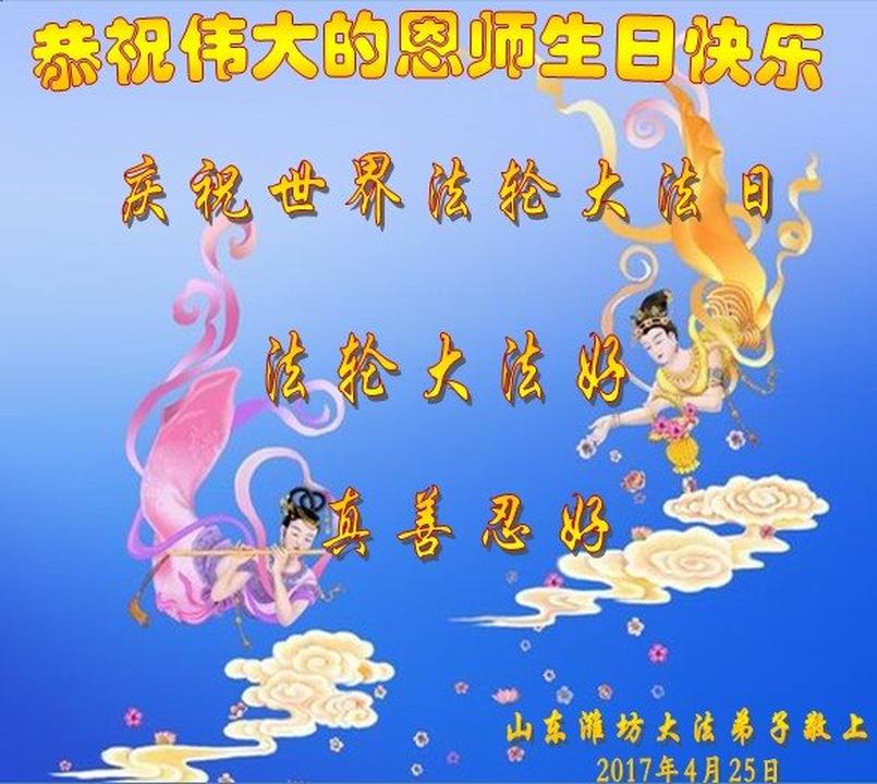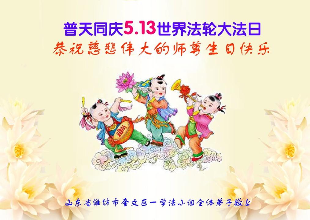 Falun Dafa Practitioners from Weifang City Celebrate World Falun Dafa Day and Respectfully Wish Master Li Hongzhi a Happy Birthday (22 Greetings)