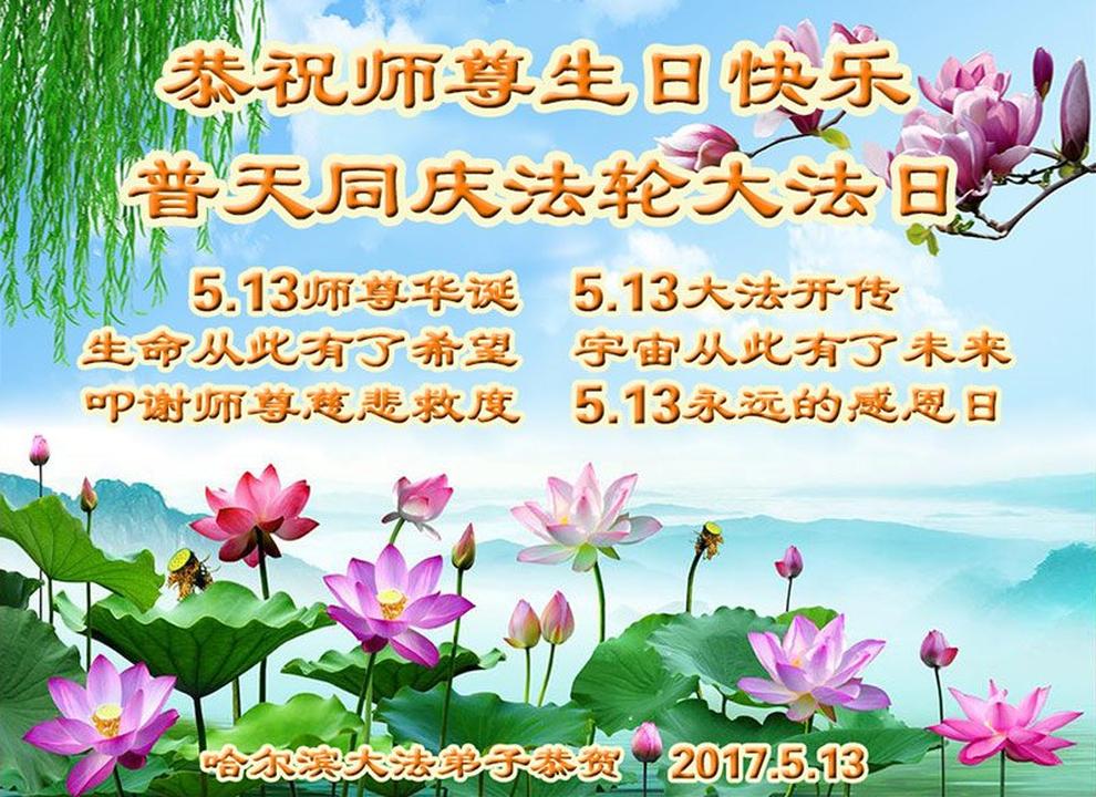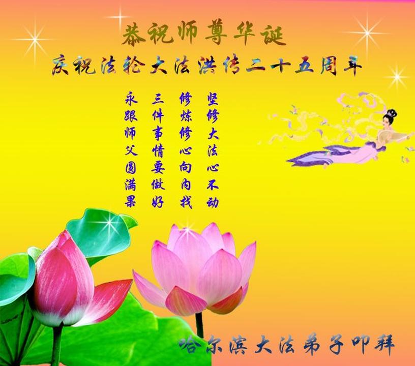 Falun Dafa Practitioners from Harbin City Celebrate World Falun Dafa Day and Respectfully Wish Master Li Hongzhi a Happy Birthday (23 Greetings)