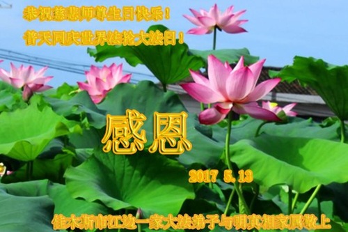 Falun Dafa Practitioners from Jiamusi City Celebrate World Falun Dafa Day and Respectfully Wish Master Li Hongzhi a Happy Birthday (21 Greetings)