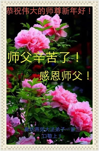 Falun Dafa Practitioners from Langfang City Respectfully Wish Master Li Hongzhi a Happy New Year (23 Greetings)