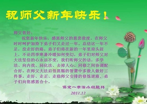 Falun Dafa Practitioners from Baoding City Respectfully Wish Master Li Hongzhi a Happy New Year (27 Greetings)