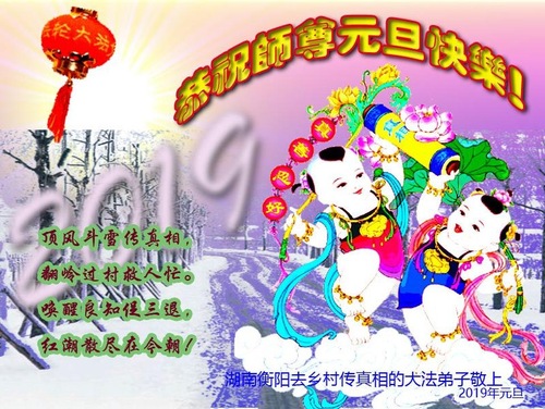 A well-wisher from a village in Hebei Province sent the following greeting message:“Dear Master, my brother and I became practitioners through our grandmother. I promise to remove all bad thoughts and follow Master back to my place of origin. The three of us wish Master Happy New Year!”