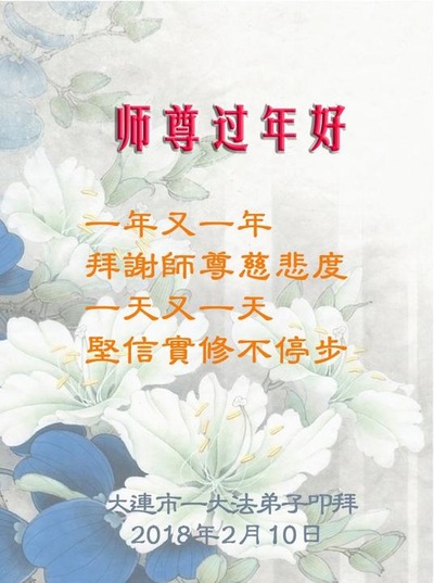 Falun Dafa Practitioners from Dalian City Respectfully Wish Master Li Hongzhi a Happy Chinese New Year (25 Greetings)