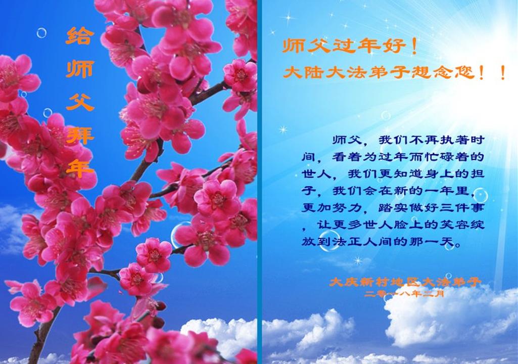 Falun Dafa Practitioners from Daqing City Respectfully Wish Master Li Hongzhi a Happy Chinese New Year (23 Greetings)