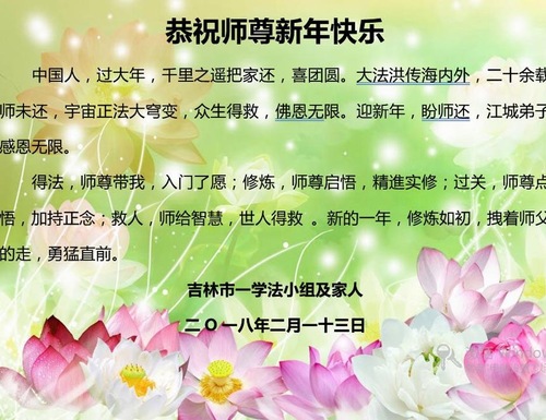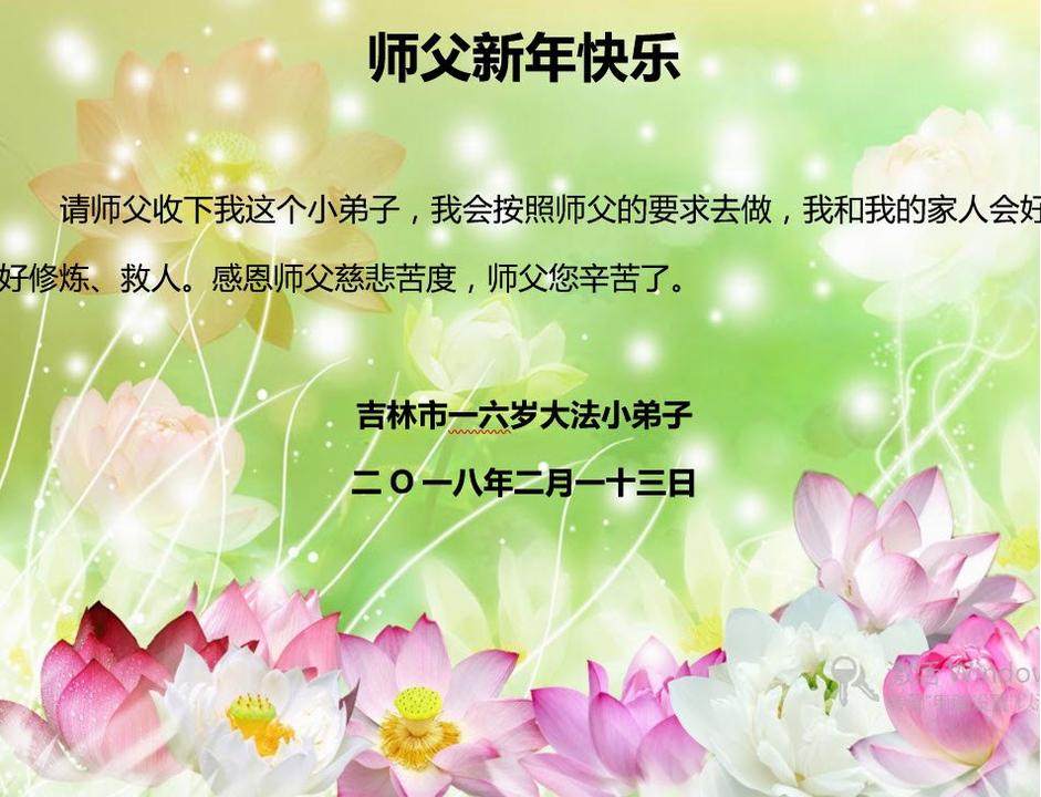 (Minghui.org) As the 2018 Chinese New Year holiday season unfolds, many young Falun Dafa practitioners send in greetings and their homemade greeting cards to wish revered Master a Happy Chinese New Year.