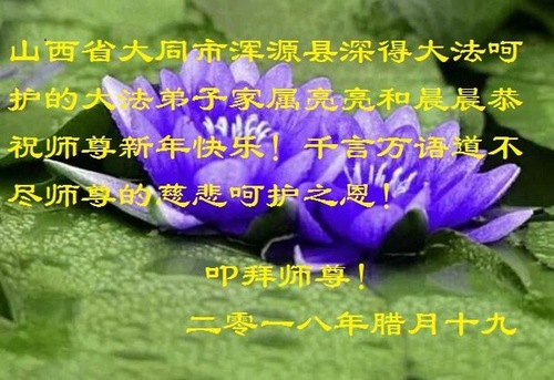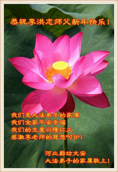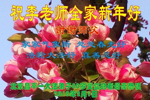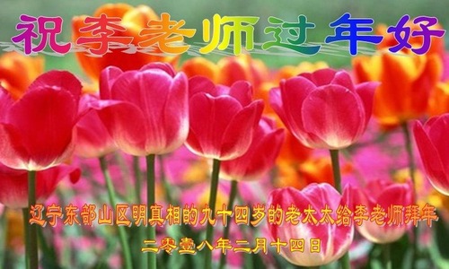A grandfather in Tianjin shared how Falun Dafa saved his grandson: “My grandson contracted a mysterious illness and his doctors suspected it was cancer. We felt like our world was crashing down around us. My younger sister, who practices Falun Dafa, advised us to recite ‘Falun Dafa is good.” Actually, she talked to us about Falun Dafa numerous times before, but we never took it to heart. But with my grandson in danger, we knew it was probably the only way to save him. To our utter surprise, my grandson soon recovered! We are totally convinced of Falun Dafa’s power. My whole family of three generations wishes Master Li a happy Chinese New Year!”