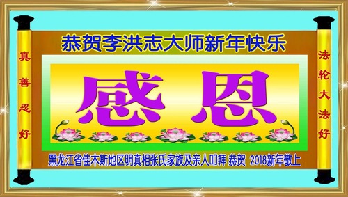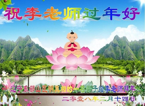 A man in Tangyu County, Heilongjiang Province, wrote, “My parents divorced when I was little. I befriended hooligans and often got into fights. Fortunately, I came across Falun Dafa practitioners and learned that I should conduct myself based on the principles of Truthfulness-Compassion-Forbearance. I gave up my hedonistic lifestyle and became a better person. A lot of my family members and friends witnessed how I changed and became supporters of Falun Dafa, too. We, in turn, have all received blessings. My family and I wish Master Li a happy Chinese New Year!”