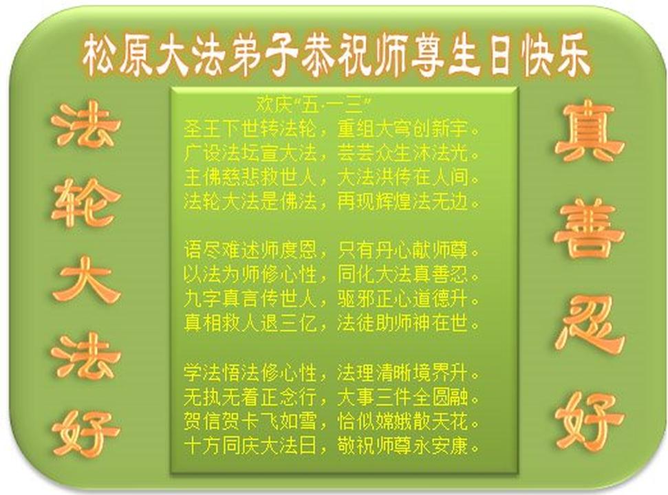 Falun Dafa Practitioners from Jilin Province Celebrate World Falun Dafa Day and Respectfully Wish Master Li Hongzhi a Happy Birthday (26 Greetings)