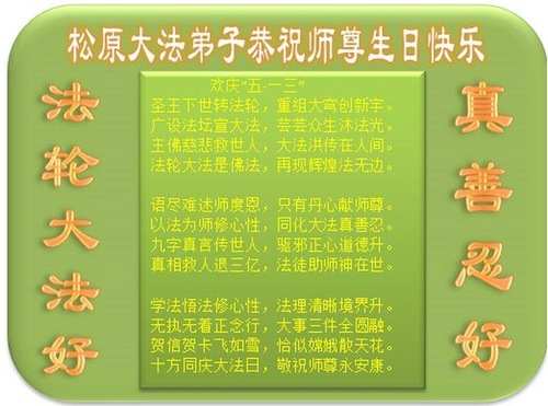 Practitioners from Jilin Province Wish Revered Master a Happy Birthday and Celebrate World Falun Dafa Day!