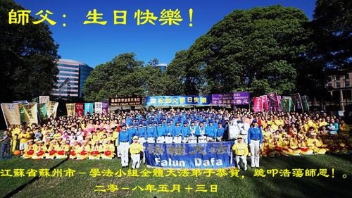 Practitioners from Jiangsu Province Wish Revered Master a Happy Birthday and Celebrate World Falun Dafa Day!