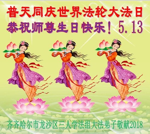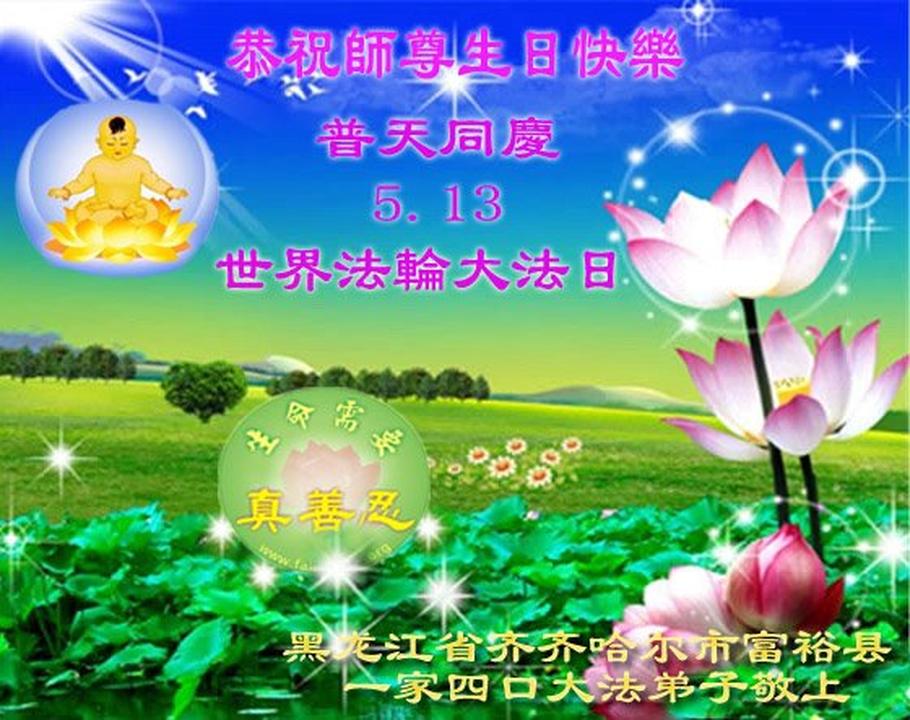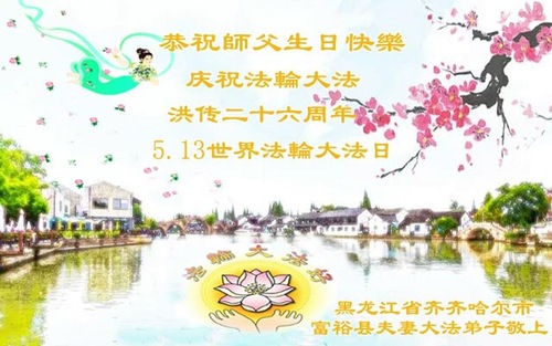 Falun Dafa Practitioners from Qiqihar City Celebrate World Falun Dafa Day and Respectfully Wish Master Li Hongzhi a Happy Birthday (19 Greetings)
