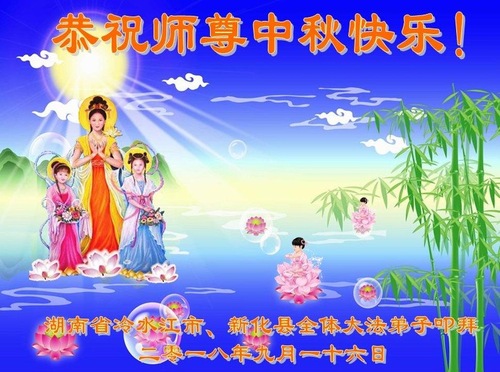 Falun Dafa Practitioners from Hunan Province Respectfully Wish Master Li Hongzhi a Happy Mid-Autumn Festival (21 Greetings)