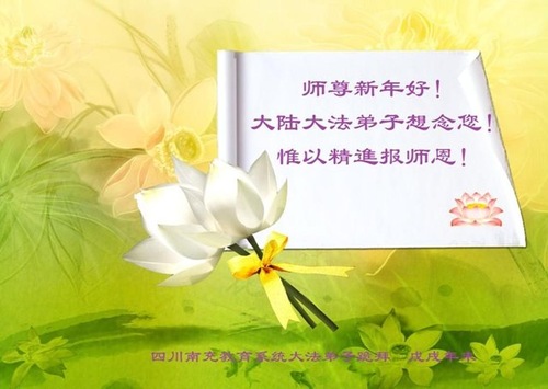 Practitioners from the education system in Weifang City, Shandong Province, wrote: “Dear Master, we would like to wish you a Happy New Year! Despite enduring the persecution for 19 years, we are determined to cultivate until the end.”