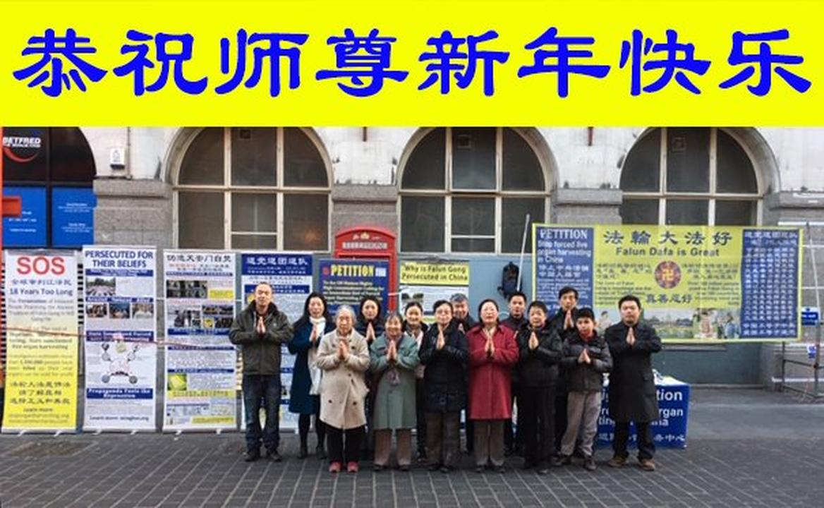 Practitioners in Chinatown, London, Respectfully Wish Revered Master a Happy New Year!