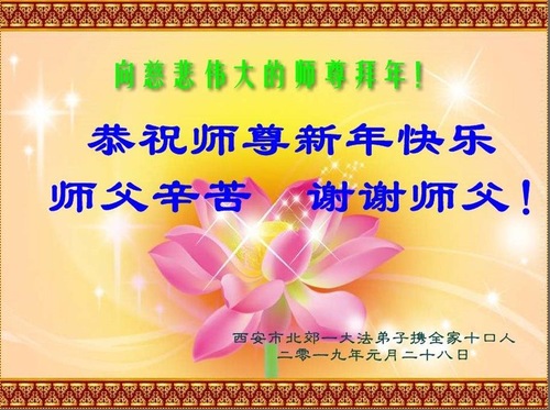 (Minghui.org) In this report, we present a selection of the 20 greetings sent from Falun Dafa practitioners in Xi'an City, Shaanxi Province, China: