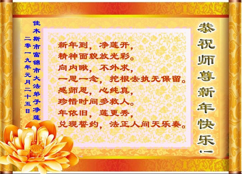 (Minghui.org) In this report, we present a selection of the 19 greetings sent from Falun Dafa practitioners in Jiamusi City, Heilongjiang Province, China: