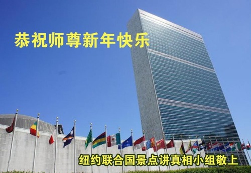 New Year Greetings to Master from practitioners in Truth Clarification Site in front of United Nations in New York