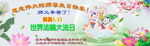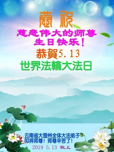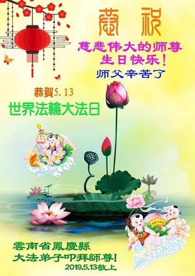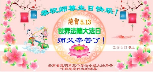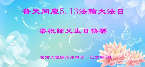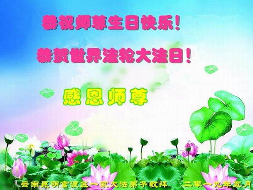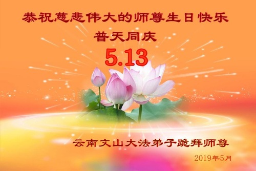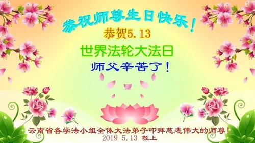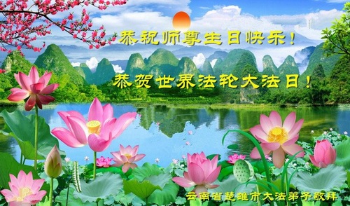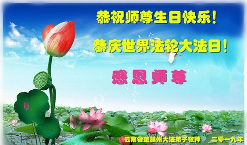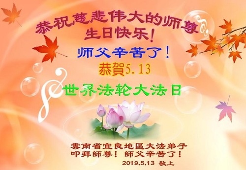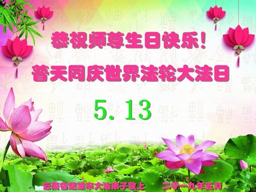 Falun Dafa Practitioners from Yunnan Celebrate World Falun Dafa Day and Respectfully Wish Master Li Hongzhi a Happy Birthday (20 Greetings)