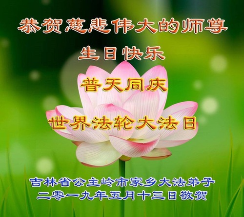 The practitioners from Gongzhuling City, the hometown of Master Li in Jilin Province, said: “Thank you, Master, for your compassionate salvation. You've done so much for us. You awakened our souls and the kindness buried deep down in our hearts; you helped us understand the real meaning of life; and you are protecting us each and every day and enabling us to mature on our spiritual path.”
