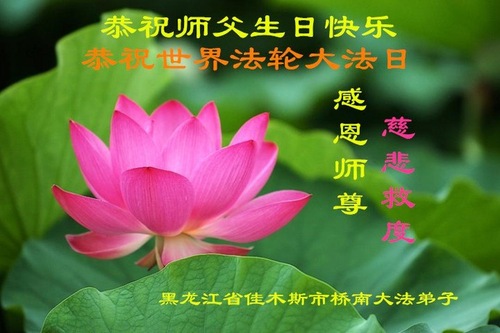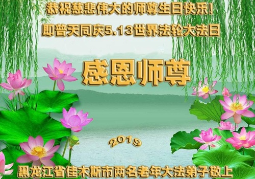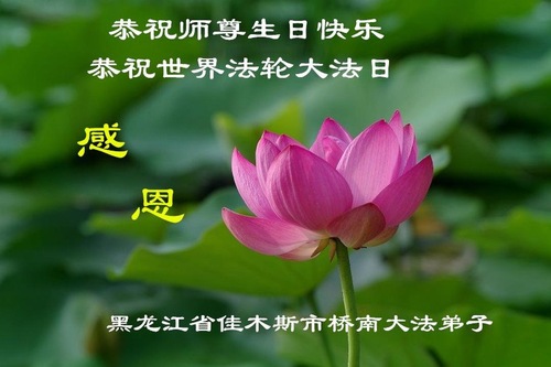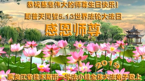 Falun Dafa Practitioners from Jiamusi City Celebrate World Falun Dafa Day and Respectfully Wish Master Li Hongzhi a Happy Birthday (21 Greetings)