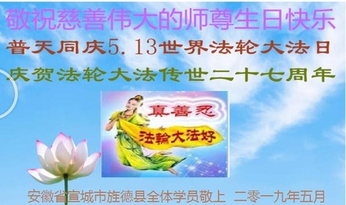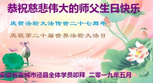 Falun Dafa Practitioners from Anhui Celebrate World Falun Dafa Day and Respectfully Wish Master Li Hongzhi a Happy Birthday (27 Greetings)