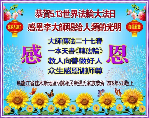 (Minghui.org) Many Falun Dafa practitioners and their families and friends who support the practice sent their warmest greetings to the Minghui website in honor of the 20th World Falun Dafa Day.