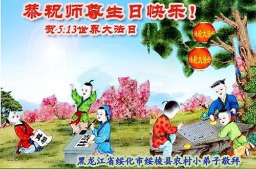 To celebrate the occasion, practitioners who live in China’s rural areas are sending their greetings to wish Master Li a happy birthday and to honor the 27th anniversary of Falun Dafa’s public introduction.