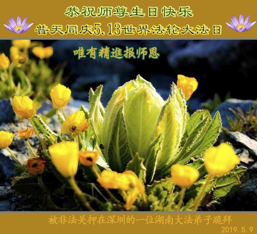 In China, however, practitioners have been persecuted by the communist regime since 1999. Nevertheless, many hold firm to their faith in Falun Dafa. To honor World Falun Dafa Day, practitioners who are illegally detained in China's prisons found ways to send their heartfelt wishes and greetings to celebrate this special day and wish Master Li a happy birthday.