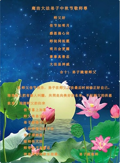 Falun Dafa Practitioners from China Respectfully Wish Master Li Hongzhi a Happy Mid-Autumn Festival (33 Greetings)
