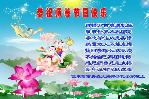 (Minghui.org) In this report, we present a selection of the 24 greetings sent from Falun Dafa practitioners in Jiamusi City, Heilongjiang Province, China: