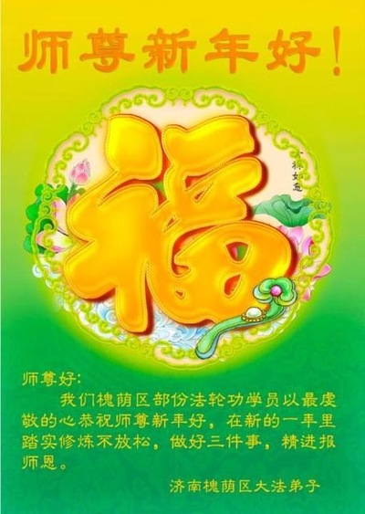 Falun Dafa Practitioners from Jinan Respectfully Wish Master Li Hongzhi a Happy Chinese New Year (24 Greetings)