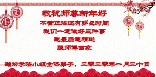 Falun Dafa Practitioners from Weifang City Respectfully Wish Master Li Hongzhi a Happy Chinese New Year (27 Greetings)