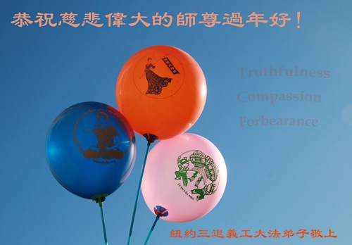 New Year Greetings to Master from practitioners who are volunteers for quitting the Chinese Communist Party service center in New York