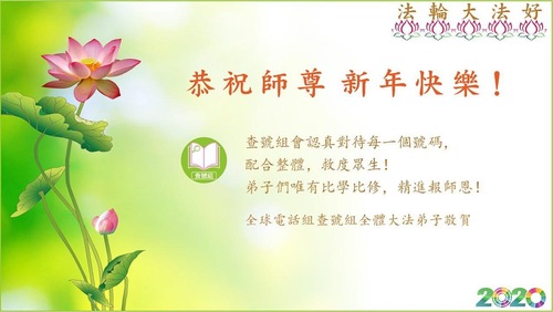 (Minghui.org) As the celebration of 2020 Chinese New Year unfolds, Falun Dafa practitioners outside of China who have made phone calls to China to clarify the truth to Chinese people, sent in their heartfelt greetings to wish revered Master a Happy Chinese New Year.