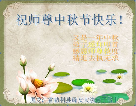 Falun Dafa Practitioners from Heilongjiang Province Respectfully Wish Master Li Hongzhi a Happy Mid-Autumn Festival (26 Greetings)