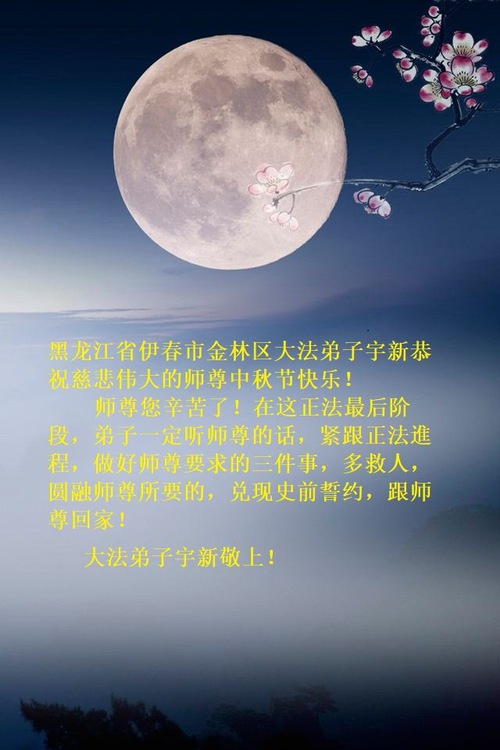 Falun Dafa Practitioners from Heilongjiang Province Respectfully Wish Master Li Hongzhi a Happy Mid-Autumn Festival (25 Greetings)