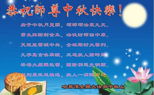 Falun Dafa Practitioners from Harbin City Wish Revered Master a Happy Mid-Autumn Festival! (19 Greetings)
