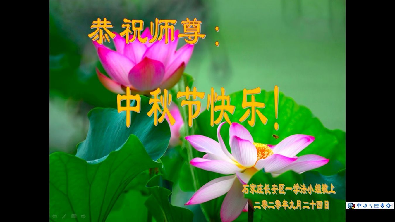 Falun Dafa Practitioners from Shijiazhuang City Respectfully Wish Master Li Hongzhi a Happy Mid-Autumn Festival (23 Greetings)
