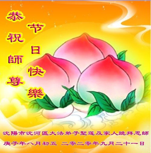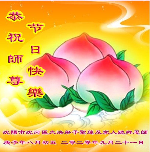 Falun Dafa Practitioners from Shenyang City Respectfully Wish Master Li Hongzhi a Happy Mid-Autumn Festival (18 Greetings)