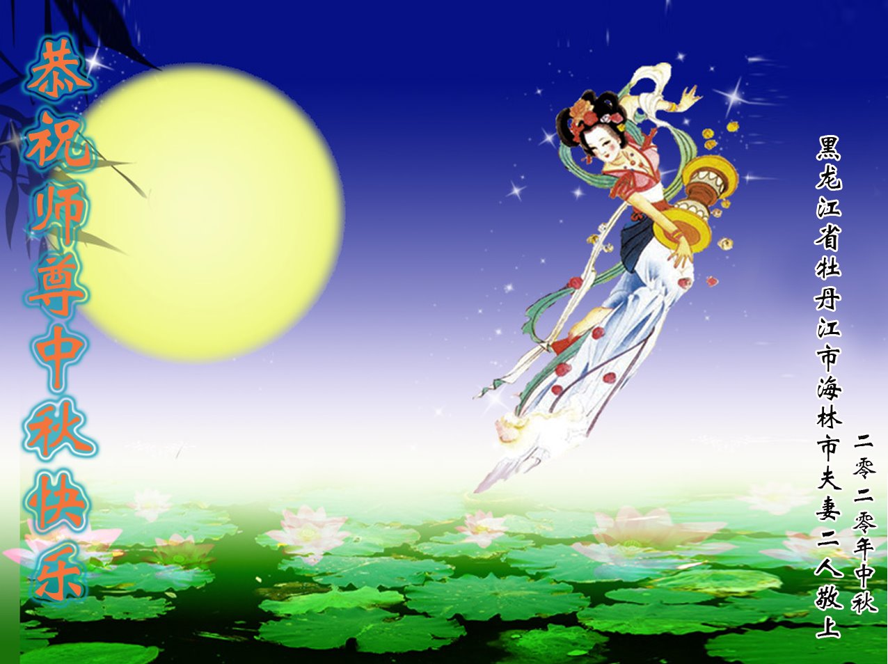 Falun Dafa Practitioners from Heilongjiang Province Respectfully Wish Master Li Hongzhi a Happy Mid-Autumn Festival (26 Greetings)