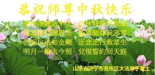 Falun Dafa Practitioners from Shandong Province Respectfully Wish Master Li Hongzhi a Happy Mid-Autumn Festival (23 Greetings)