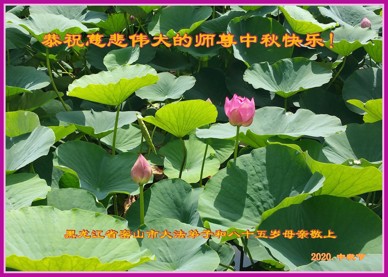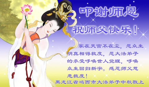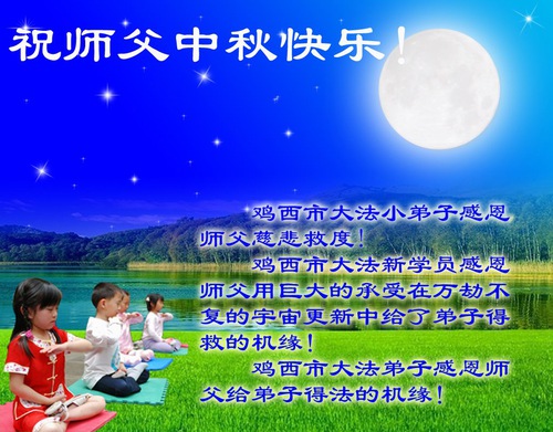 Falun Dafa Practitioners from Jixi City Respectfully Wish Master Li Hongzhi a Happy Mid-Autumn Festival (24 Greetings)