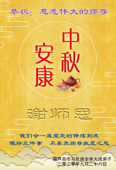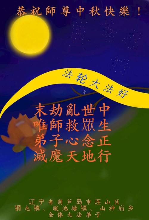 Falun Dafa Practitioners from Huludao City Respectfully Wish Master Li Hongzhi a Happy Mid-Autumn Festival (25 Greetings)
