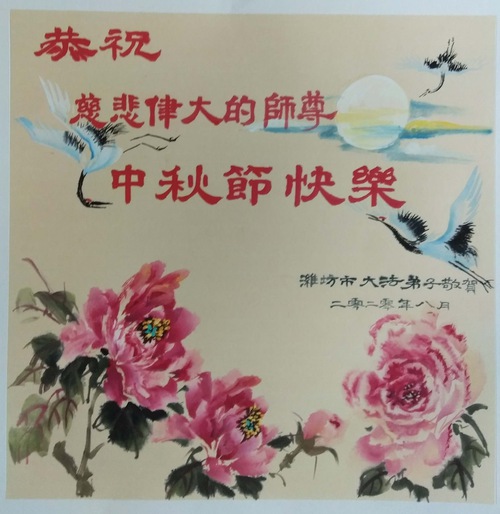 Falun Dafa Practitioners from Weifang City Respectfully Wish Master Li Hongzhi a Happy Mid-Autumn Festival (28 Greetings)