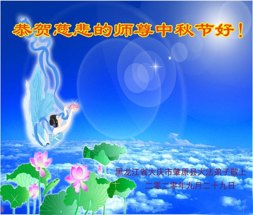 Falun Dafa Practitioners from Daqing City Respectfully Wish Master Li Hongzhi a Happy Mid-Autumn Festival (24 Greetings)