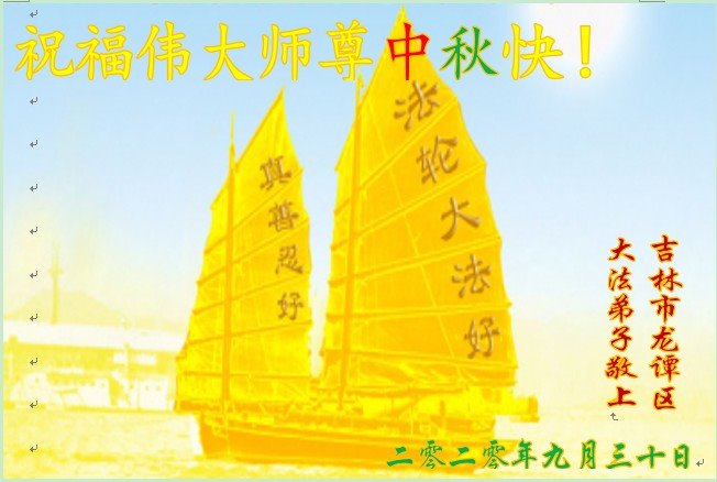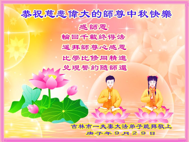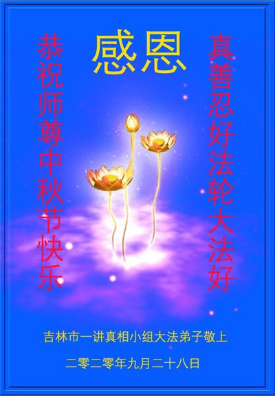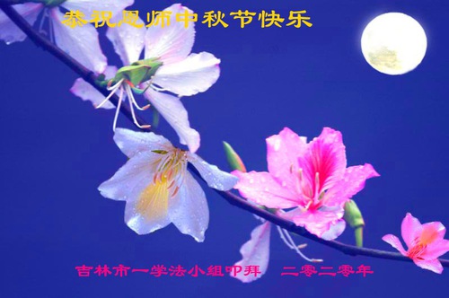 Falun Dafa Practitioners from Jilin City Respectfully Wish Master Li Hongzhi a Happy Mid-Autumn Festival (26 Greetings)