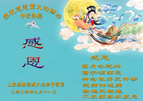 Falun Dafa Practitioners from Weifang City Respectfully Wish Master Li Hongzhi a Happy Mid-Autumn Festival (21 Greetings)